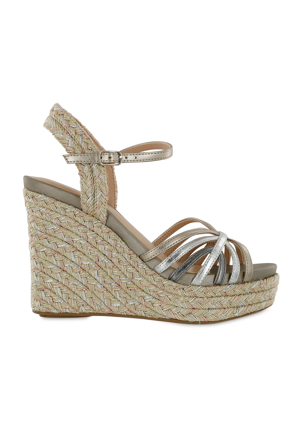 Need a lift? Upgrade your shoe collection with the ANJALLI. This wedge features a woven wrapped 4-inch heel with an ankle strap and buckle closure for a secure fit. Designed with strappy detailing at the toe, you’ll sure turn heads in the ANJALLI.