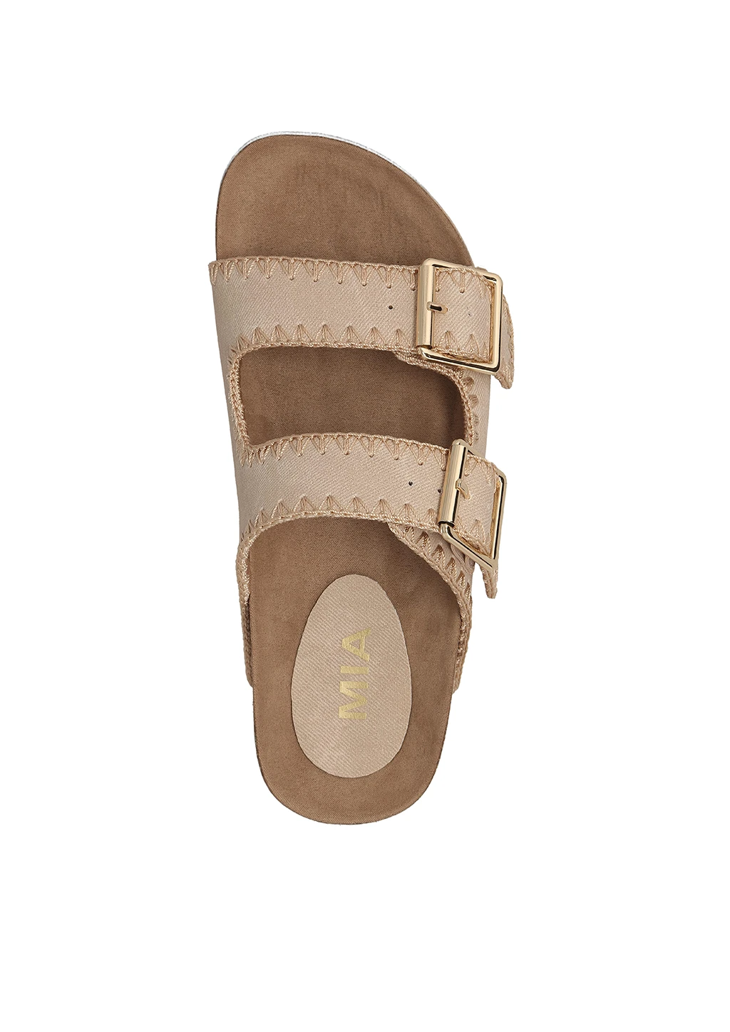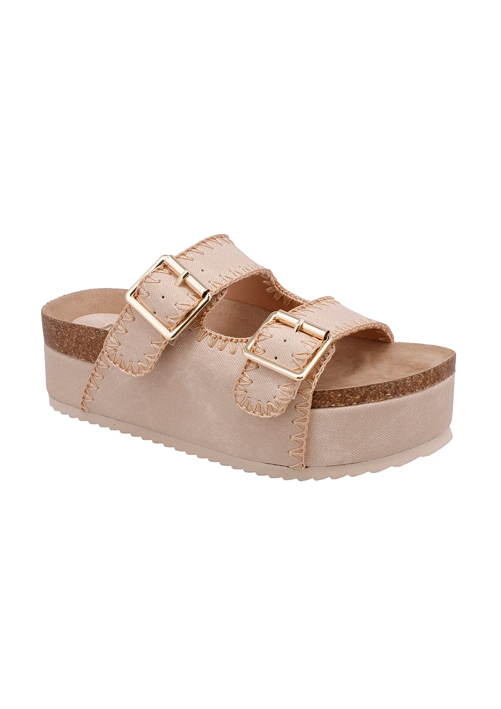Meet the BOWIE, your new summer slip on. This sandal is crafted on suede material, features accent stitched detailing and a gold chic buckle for extra flair. Finished on a 2-inch platform.