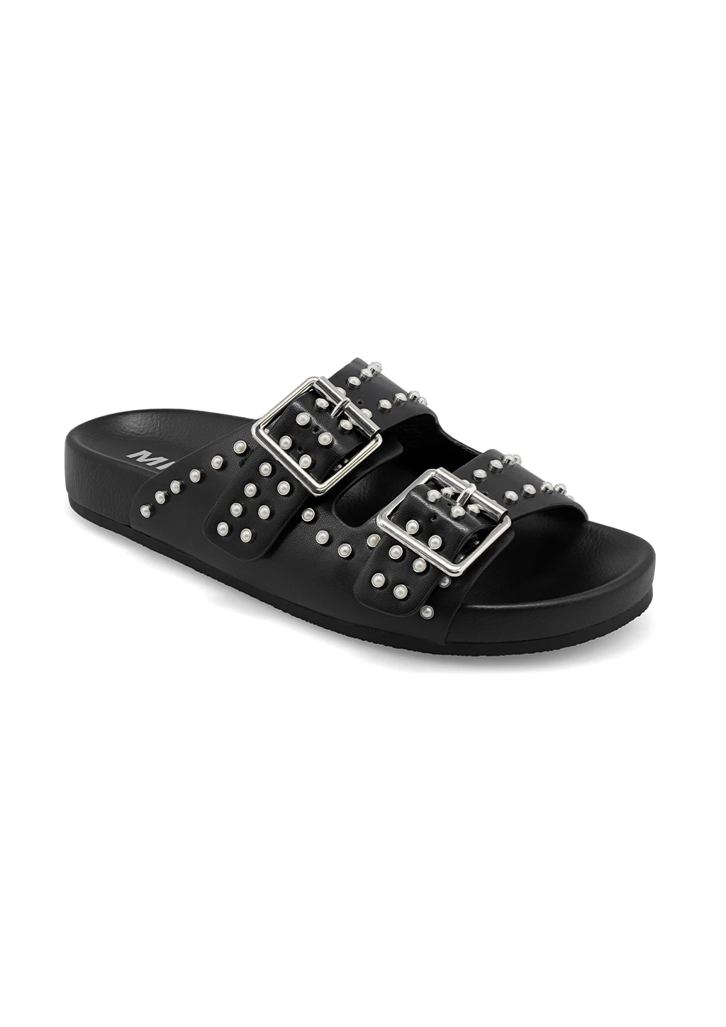 The perfect, dainty sandal for any season: BROOKLYN. This two-strap sandal is crafted from vegan leather, features pearl detailing and two metal buckles for a custom fit. Finished on our contoured footbed for all day comfort.
