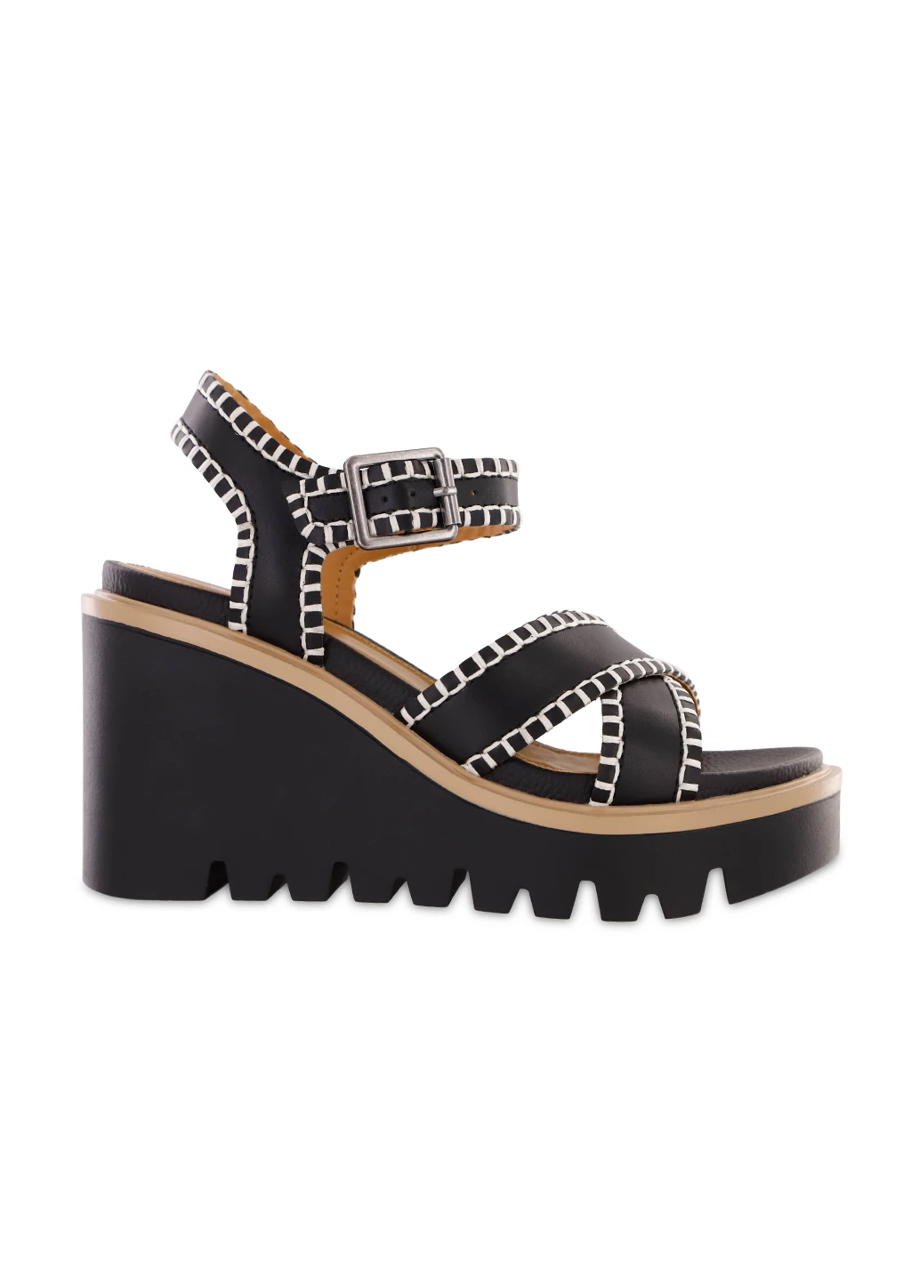 Step into style with the CIENNA. This sandal features a sporty wedged heel and padded insole for all-day comfort without sacrificing style. CIENNA is designed from vegan leather material, includes stiching design detailing and a silver buckle closure for easy on-and-off wear. Finished with a 3.5-inch sneaker bottom wedged sole, ridged for extra flexibility and all-day comfort.