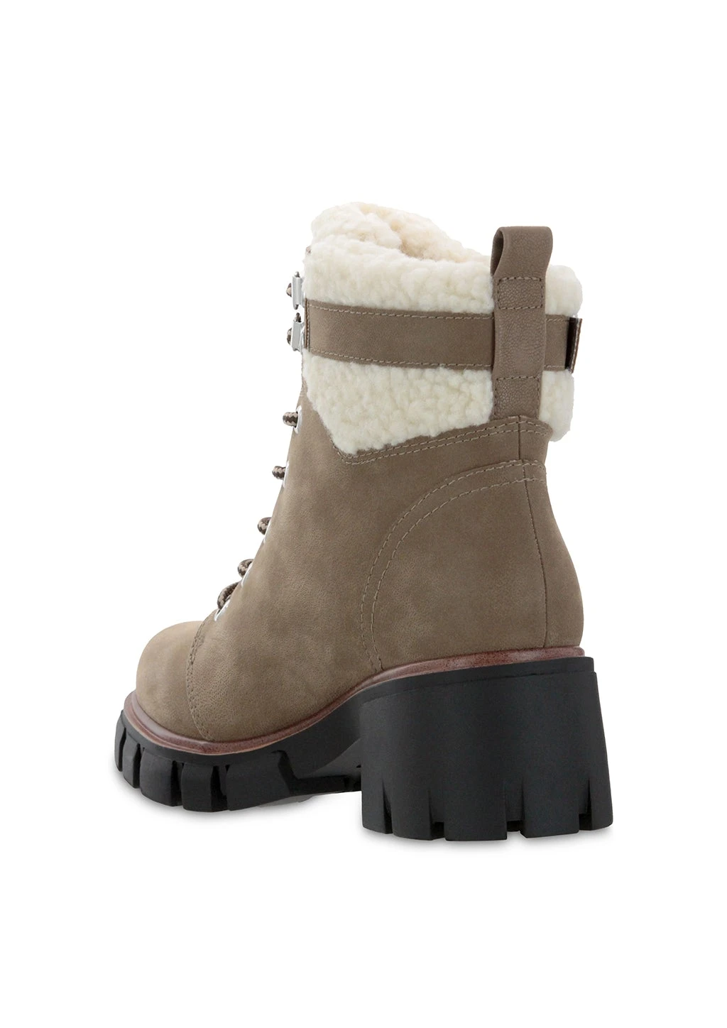 Step up your fall wardrobe with the COEN. This combat foot is designed a from man-made upper and features thick lace-ups with metallic grommets and shearling through the shaft for ultimate comfort. Finished on a stacked heel and our saw-edged lug bottom sole. Made for all day wear.