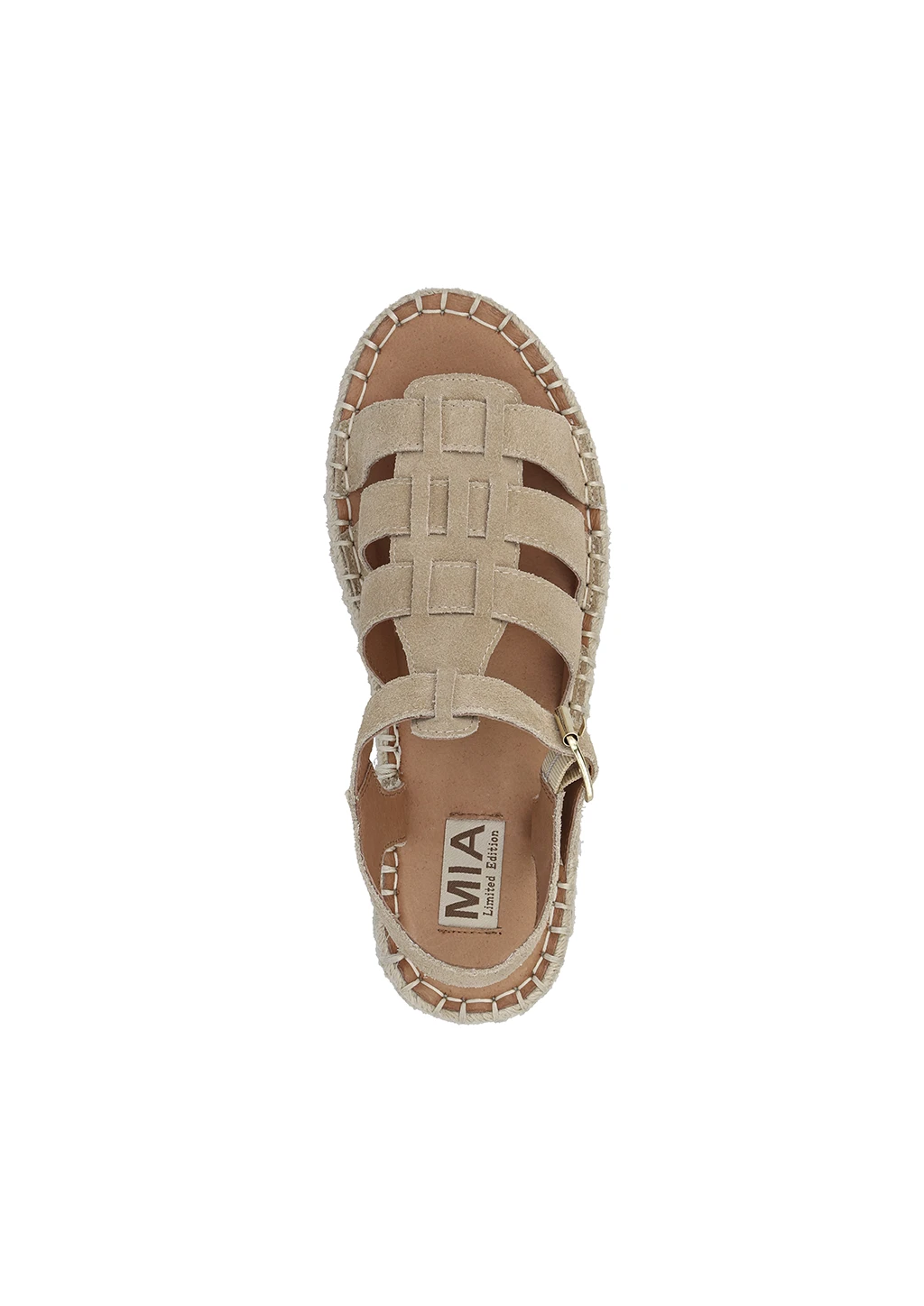 Buckle up in this oh-so-edgy gladiator sandal. Crafted from genuine suede material and leather lining, this multi-strap sandal features an open-toe design with straps that elegantly cross the vamp and a chic buckle closure. Finished on a 1-inch espadrille-wrapped platform with textures to match your favorite summer ensemble.