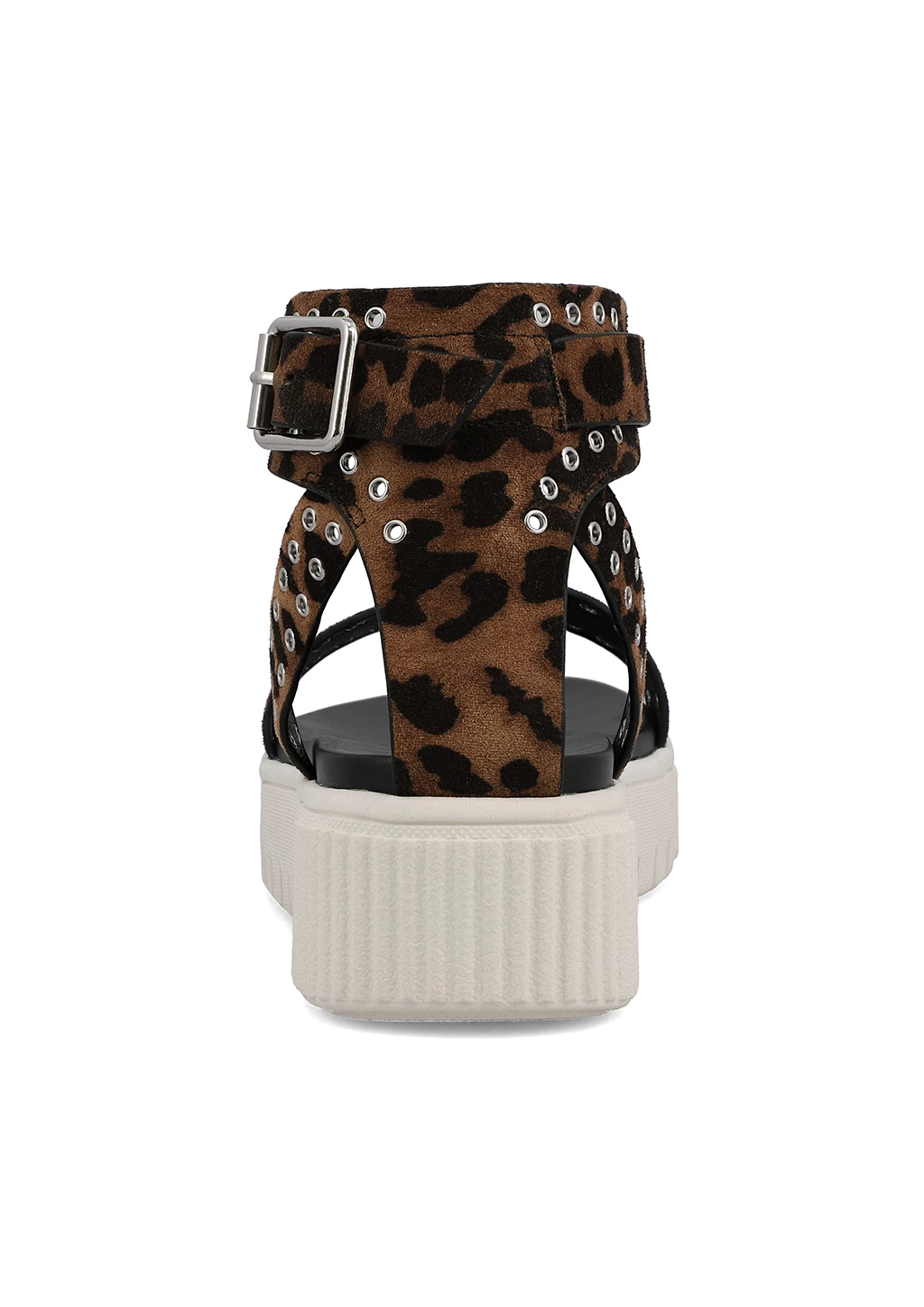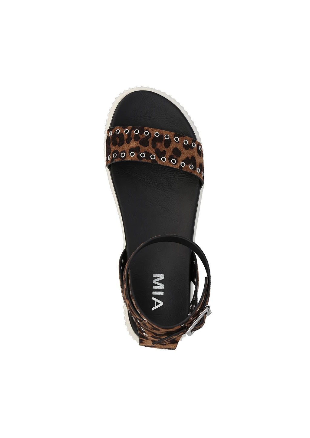 Our classic and fan-favorite sneaker bottom construction is back and better in leopard print. Meet EVELIN, crafted with a unique jagged sole and edgy grommet details. This sandal is designed on a vegan suede upper and finished on our MIA signature footbed for maximum support and comfort.