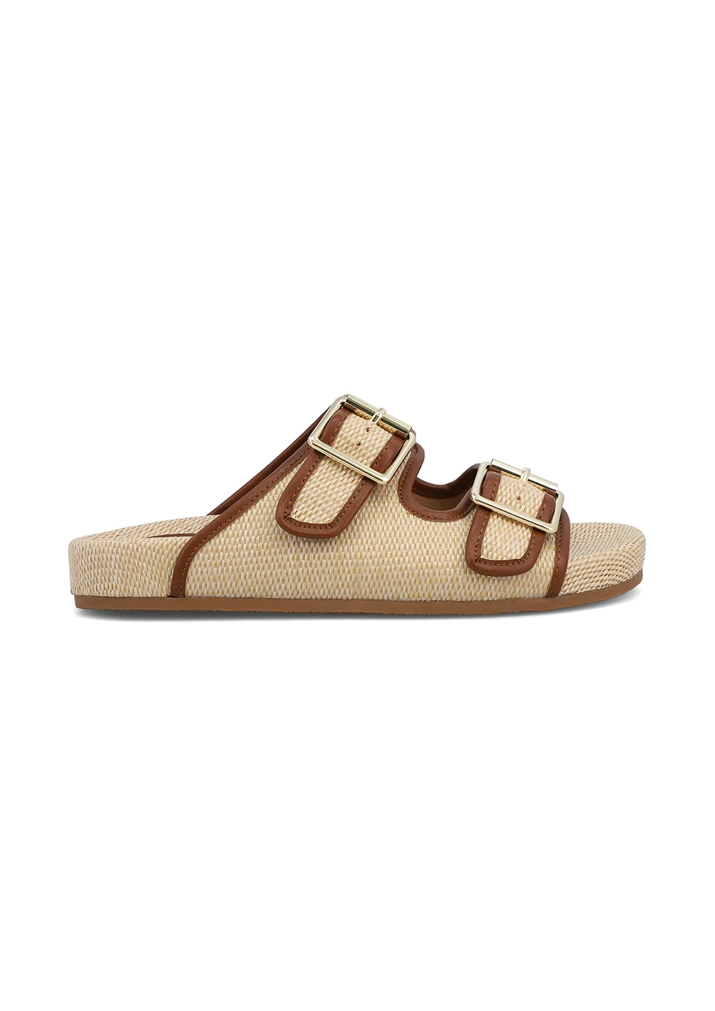 The newest item at the top of your wish list. This two-toned raffia sandal is the perfect addition to your spring and summer wardrobe. With two adjustable straps and chic gold buckles, GAZELL is the it-girl sandal this season. Now available in three color variations for any look.