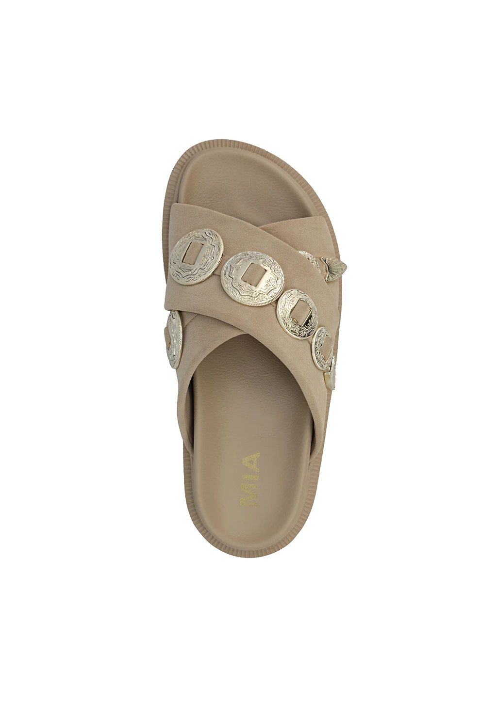 Ready to make a statement? GORGENE will set you apart. Designed with vegan leather, double cross straps and silver hardware, this sandal gives a western touch to your summer wardrobe. Finished on a contoured footbed and a 1.5-inch platform sole.