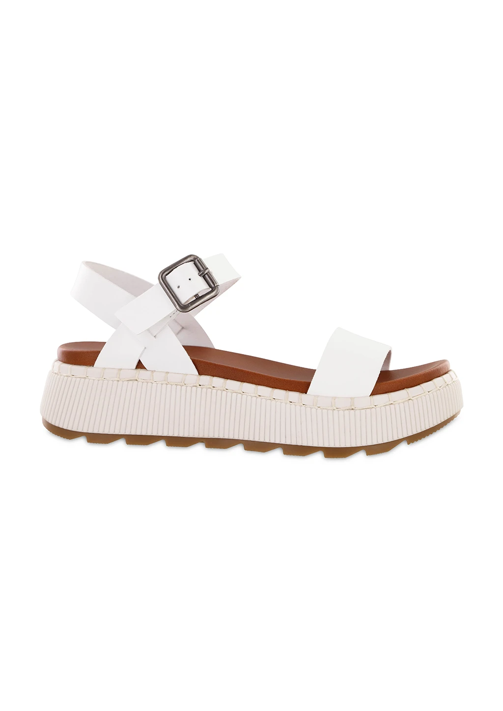 We’re taking sporty-chic to the next level with HAYLEY. A vegan leather sandal with an upper strap for support and a buckle closure around the ankle. Featuring MIA’s signature contoured footbed and a rubber thick sole platform.