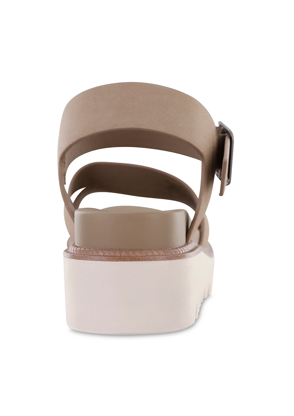 Your new everyday sandal, JOVIE. Designed from vegan leather, this sandal features two upper straps with a strap that hugs the ankle and a silver buckle closure. Finished on a cushioned insole for everyday comfort, and an elevated athletic rubber sole. Ridged for extra flexibility and all-day comfort.