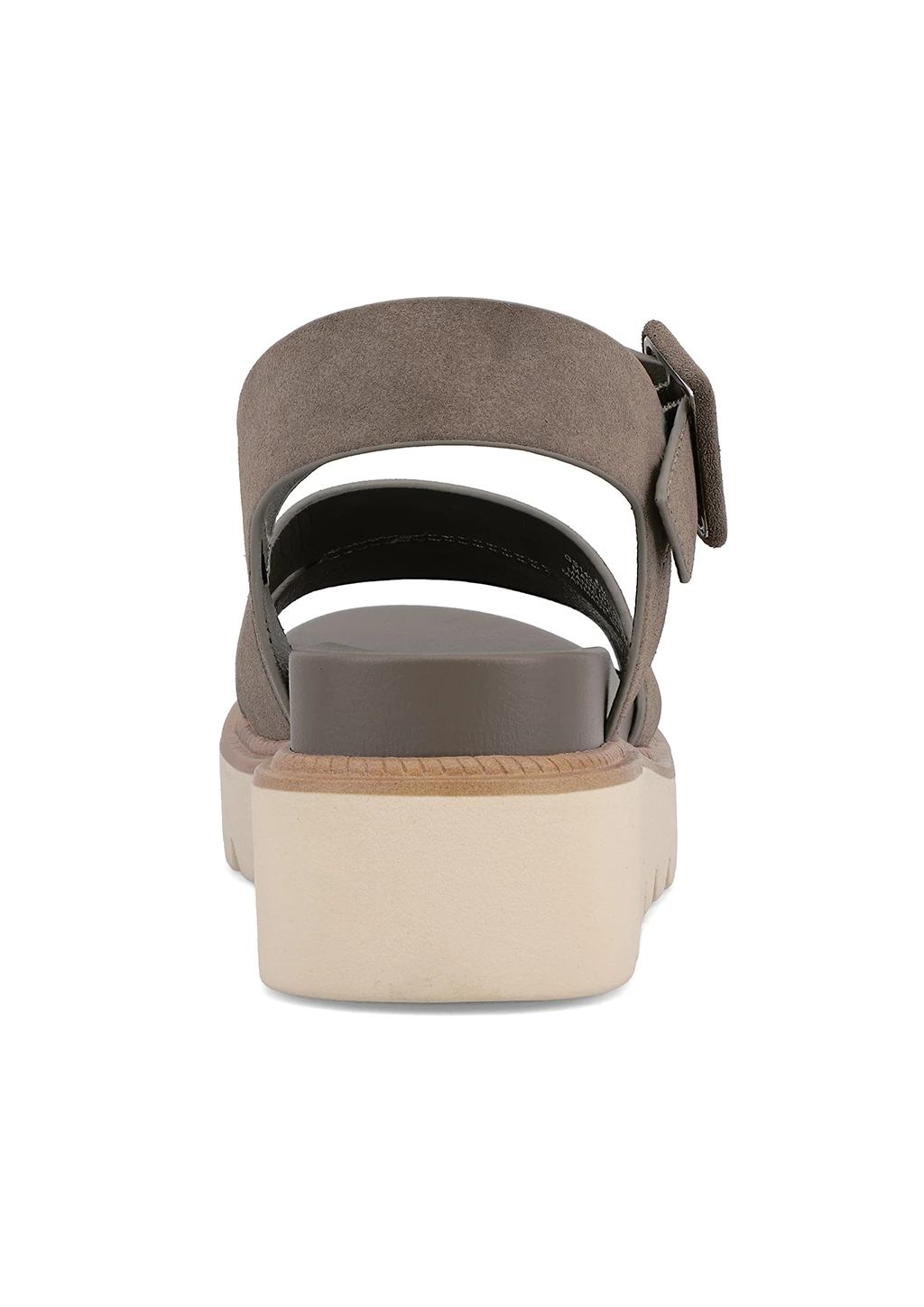 Your new everyday sandal, JOVIE. Designed from vegan leather, this sandal features two upper straps with a strap that hugs the ankle and a silver buckle closure. Finished on a cushioned insole for everyday comfort, and an elevated athletic rubber sole. Ridged for extra flexibility and all-day comfort.