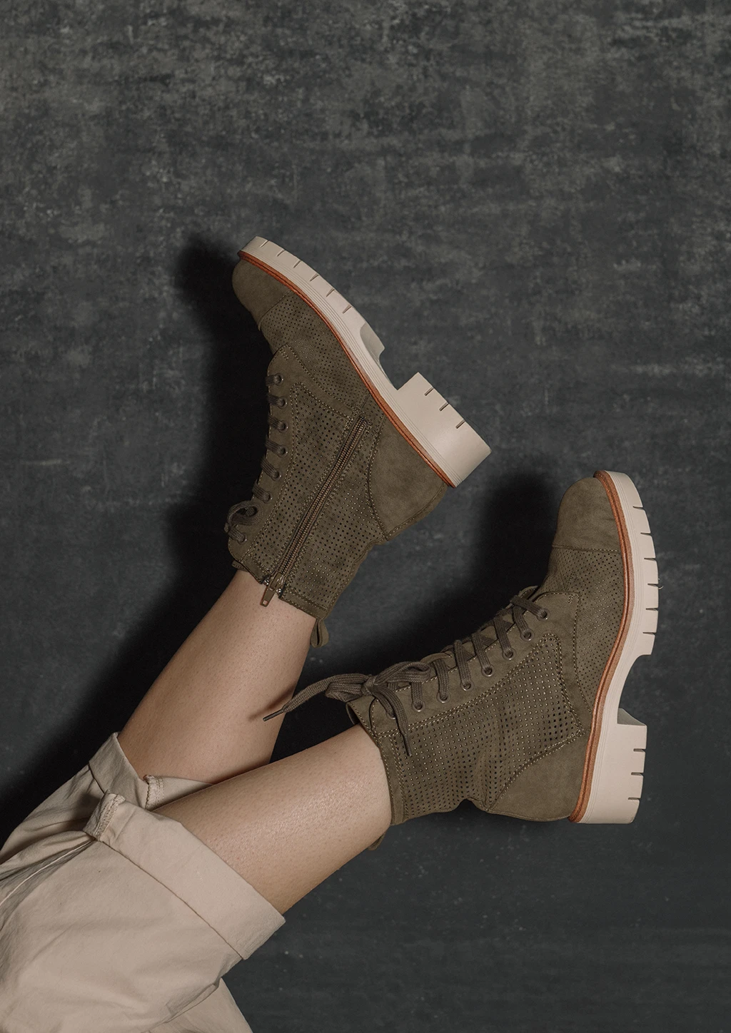 For all the boot lovers, meet KASHTON. A chic combat boot crafted with real suede and eyelet detailing. Sitting on a 1.5-inch heel with a lace up closure. Finished on our signature contoured footbed for all day wear.