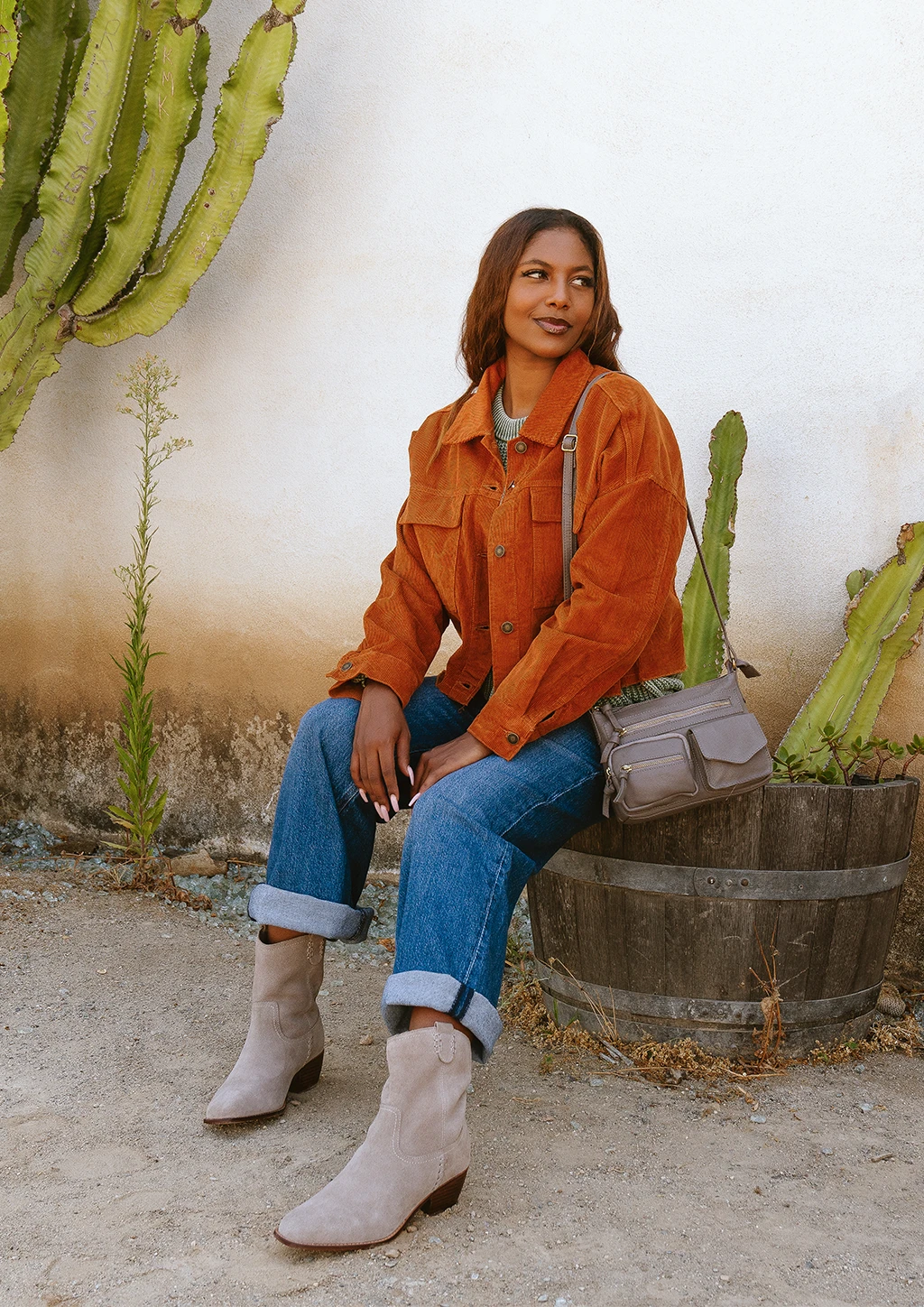 Set yourself apart in the LAURYN. This boot is crafted on lush suede material with a low 6-inch shaft and convenient pull straps. Finished on a leather stacked 1.7-inch heel and our signature contoured footbed. Made for all day wear.