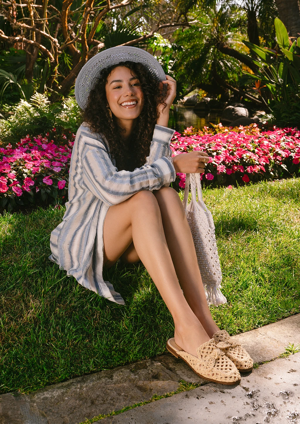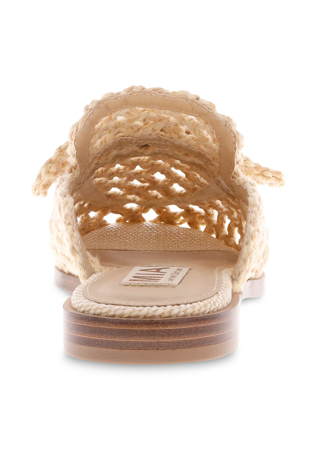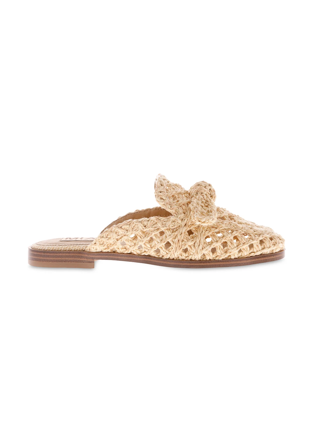 Step into style with LAYCE. A modern mule crafted with an intricate woven raffia upper, featuring a leather-lined padded footbed. Finished on a small 0.5-inch stacked heel and timeless square toe design.Â