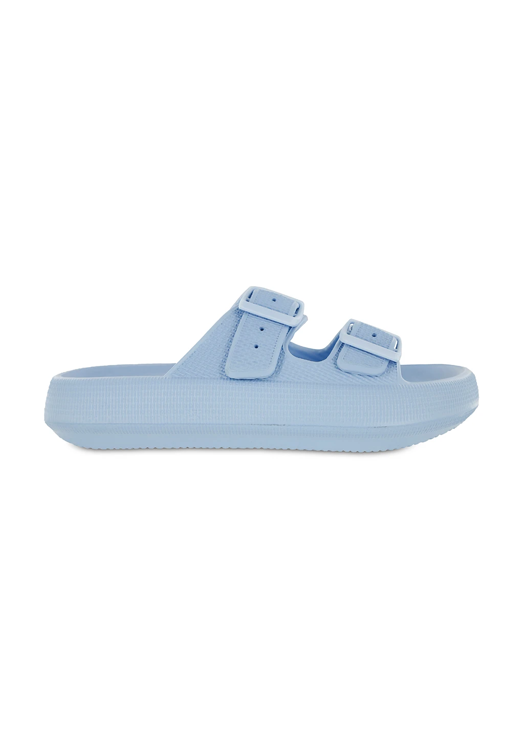 Known for comfort, this dual-buckle strapped rubber sandal is perfect for all-day wear. The LIBBIE features a subtly textured, monochromatic surface and buckle closures on the straps.