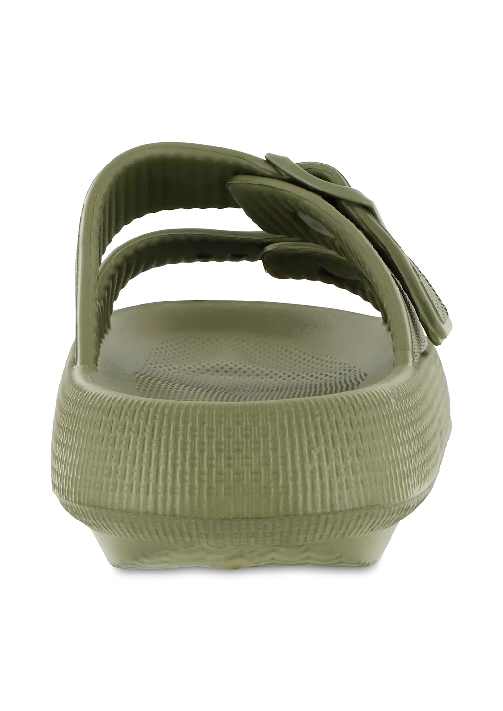 Known for comfort, this dual-buckle strapped rubber sandal is perfect for all-day wear. The LIBBIE features a subtly textured, monochromatic surface and buckle closures on the straps.