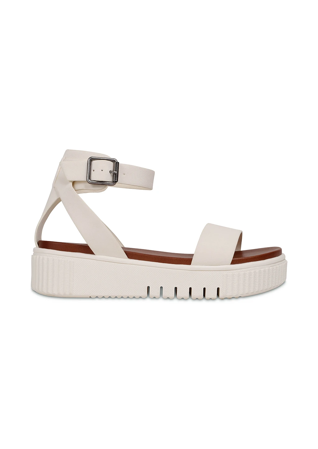 The Lunna athleisure sneaker bottom sandals are a spring essential. Designed with a platform rubber sole, this sporty and strappy sandal design is kept securely in place with a thick foot strap and ankle clasp closure. Cool and comfortable, like the signature MIA Ellen sandal, the Lunna sandals feature a unique jagged bottom flatform.Â