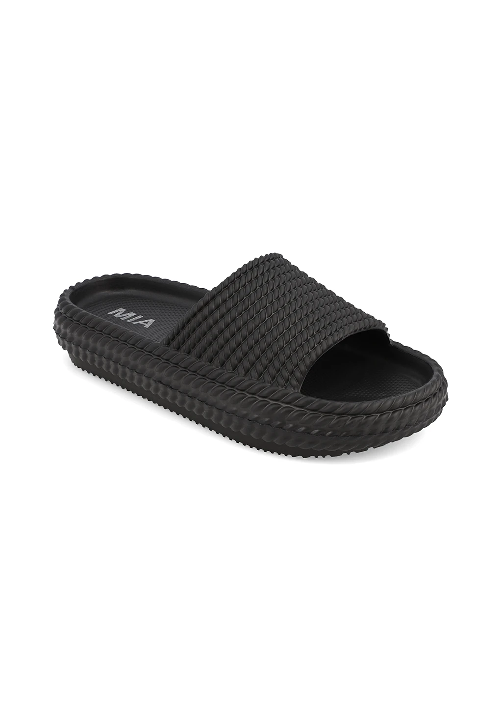 The LUVLY is here for your poolside adventures. This sandal is crafted with a thick rubber sole and thick strap across the foot. Waterproof and made for all day wear.