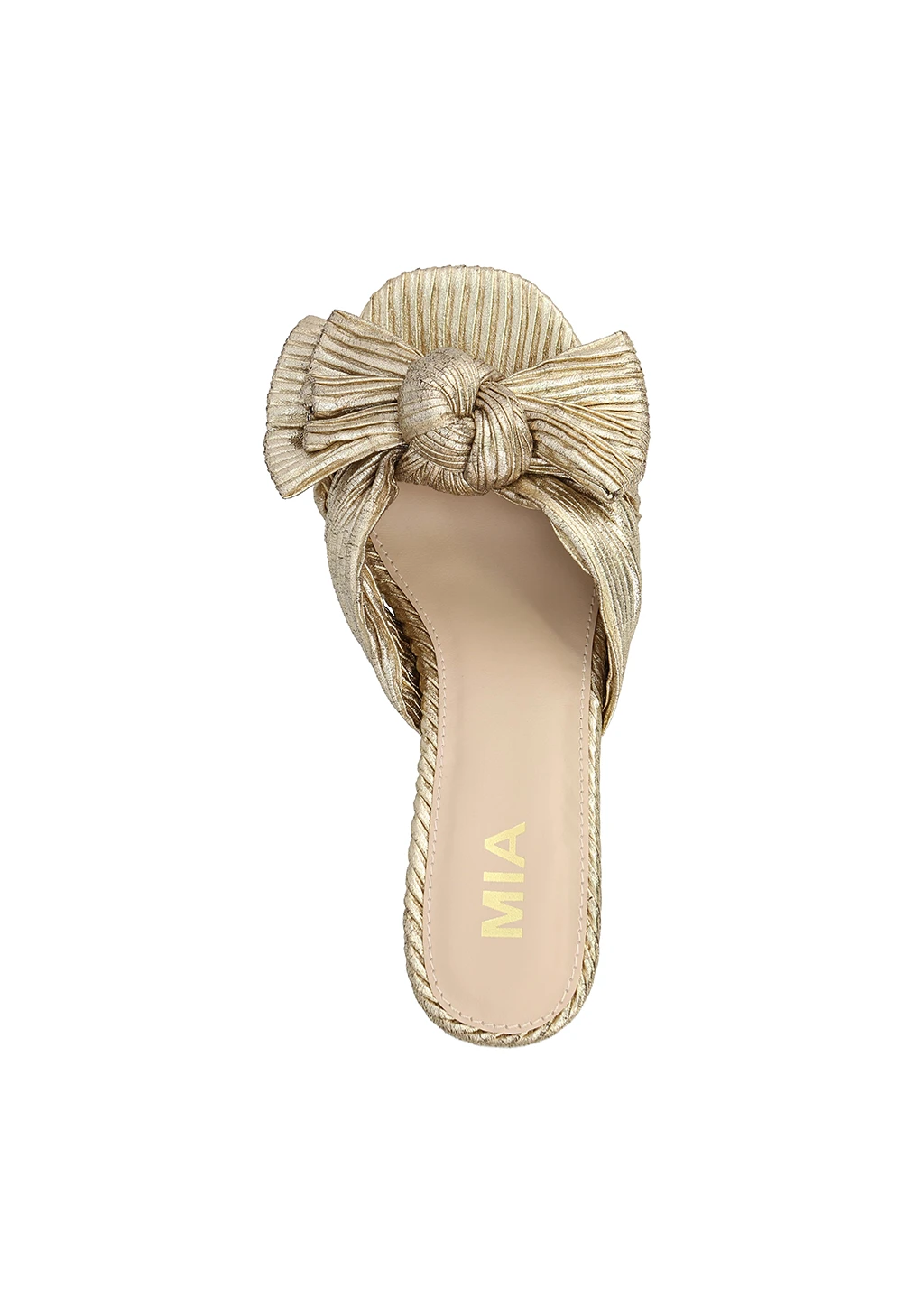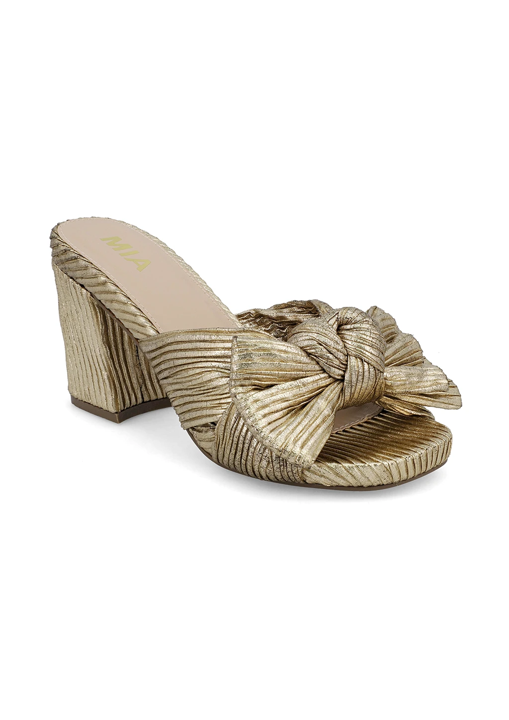 Make a glam statement with MECHELLE. Finished on a 3-inch supportive block heel that’s perfect for special events. Bonus points for its fun pleated finish and feminine bow detail.
