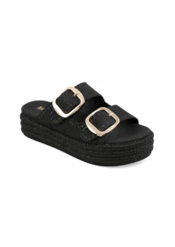 The newest addition to your rotation. The MIEKO platform sandal is your new go-to for your next vacation. Crafted on a vegan leather upper with a stitched trim detail and a thick 2-inch raffia wrapped bottom, MEIKO is a boho chic dream. Finished with gold buckles for an elevated look.