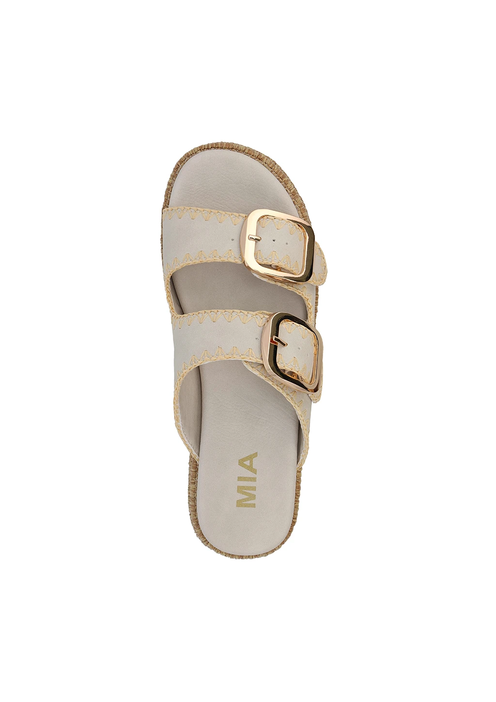 The newest addition to your rotation. The MIEKO platform sandal is your new go-to for your next vacation. Crafted on a vegan leather upper with a stitched trim detail and a thick 2-inch raffia wrapped bottom, MEIKO is a boho chic dream. Finished with gold buckles for an elevated look.