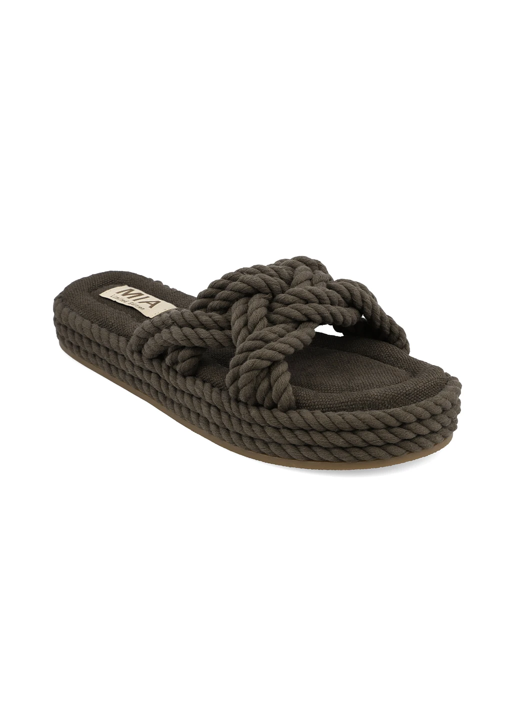 Slip into a warm state of mind with the MIKO. Designed on a cushioned insole, this strappy sandal features thick braided upper straps and a rope wrapped 1-inch platform. Cute and comfortable, she’s worth the tan lines.