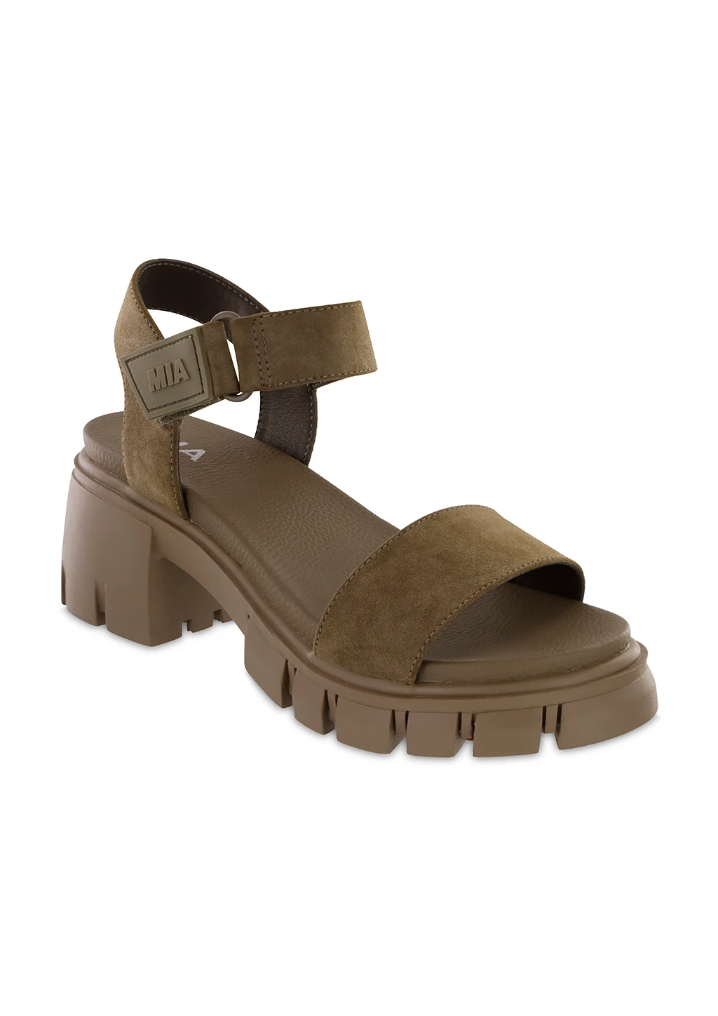 The SKYLER is your newest go-to spring sandal. This modern monochromatic shoe features a vegan suede upper strap, and a Velcro ankle strap to keep the feet secure. Finished on MIA’s new saw edged, lugged sole bottom.