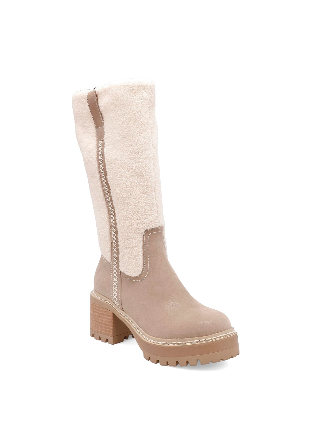 Channel an elevated cozy look with the TEIRSON. A tall 12-inch shafted boot with a synthetic upper and a faux shearling lining that will make any winter outfit stand out. Featuring a stacked 2.7-inch heel, embroidered stitching and convenient pull tabs for an easy on and off fit. Finished on our signature contoured footbed for all day wear.