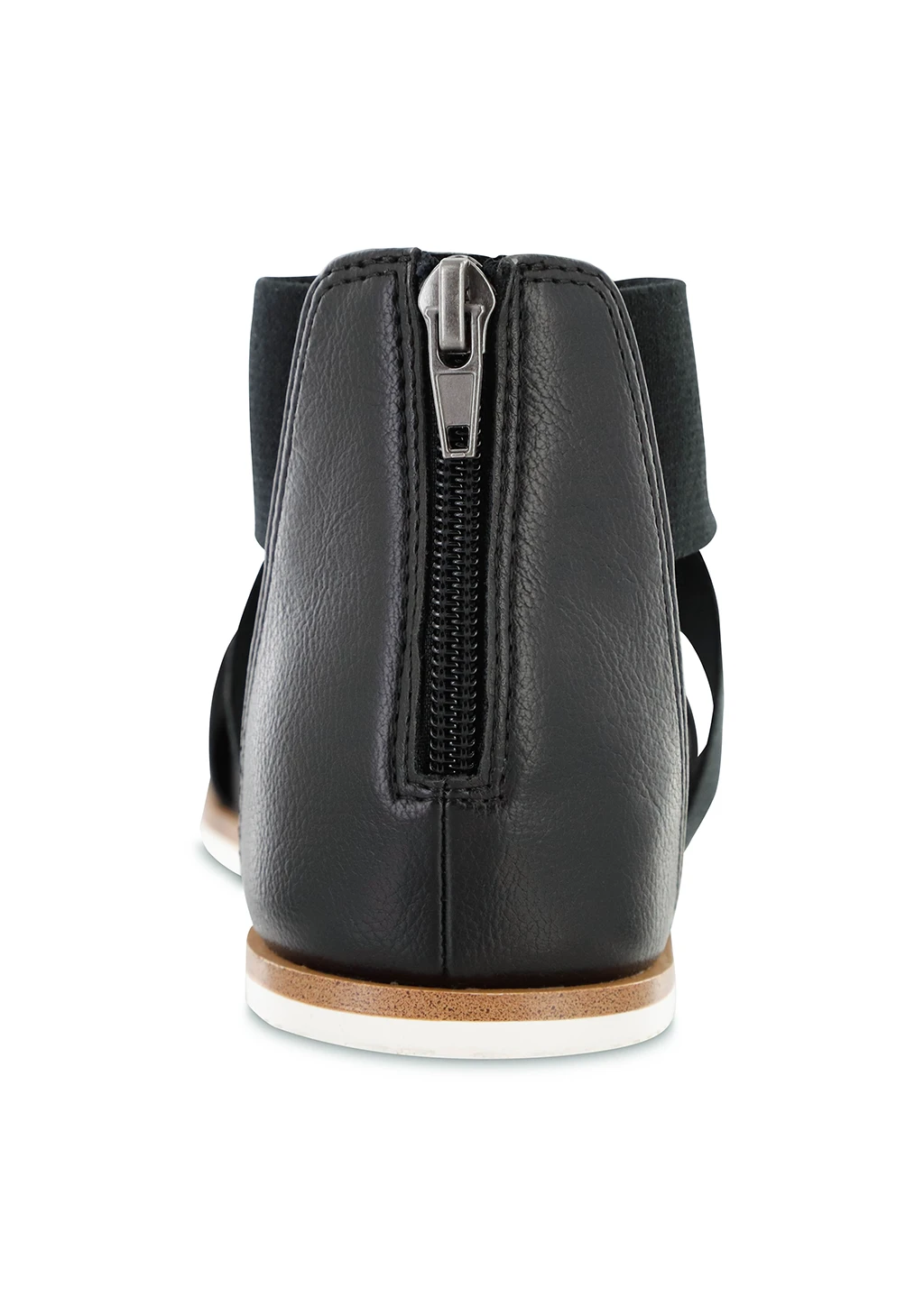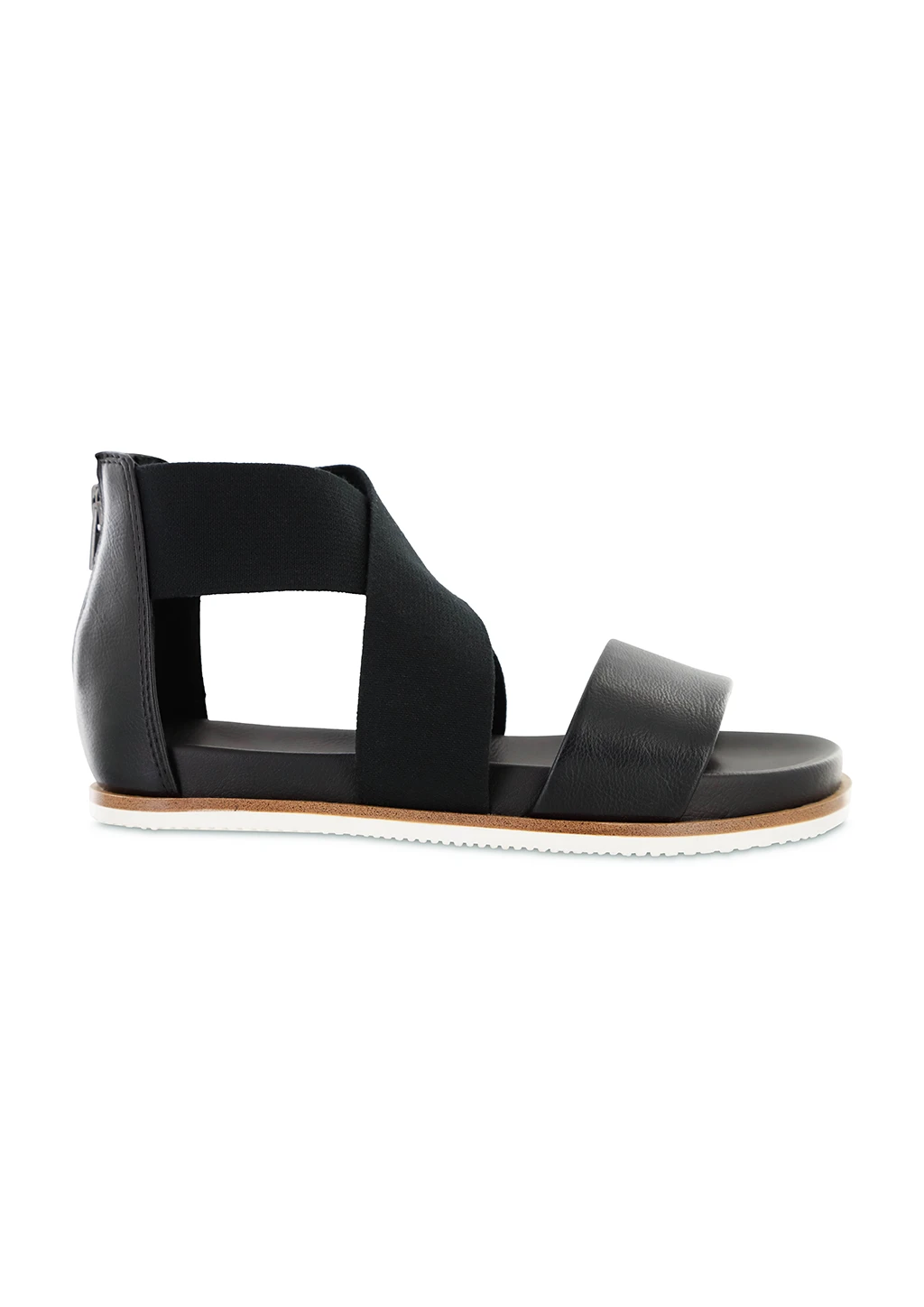Introducing, VALUNA. A vegan leather sandal with elastic upper straps for ultimate support around the ankle and a zip up closure. Featuring our signature contoured footbed for ultimate comfort.